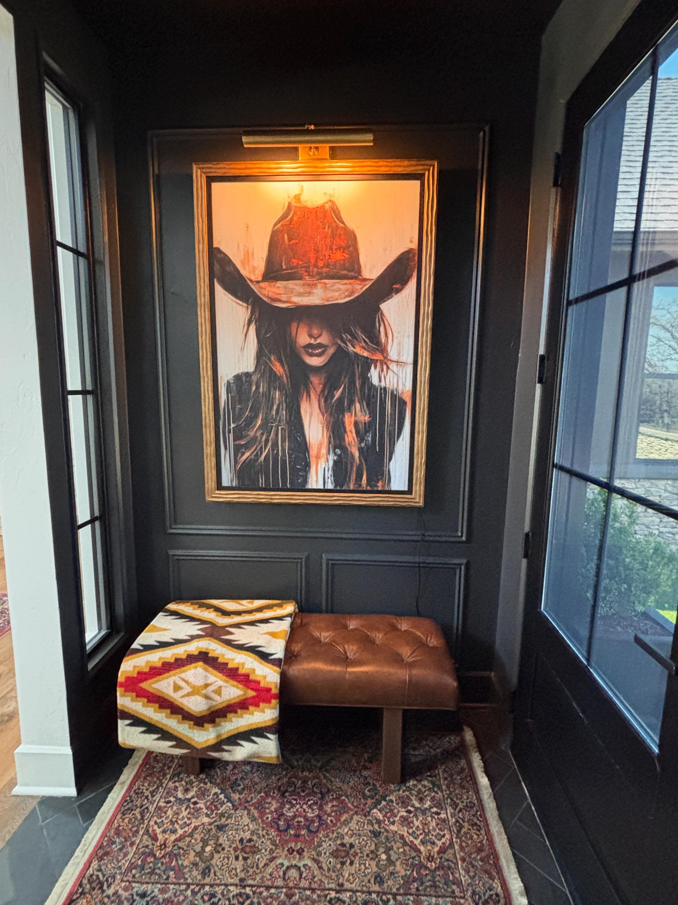 of rich Tobacco Brown leather, button tufting, weldcord detail and emphasized height of the legs.